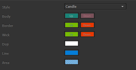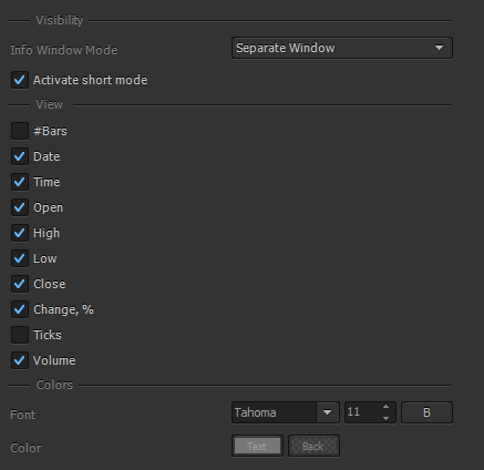 - Style - describe price movements of a symbol. Also, choose chart style through context menu: Style-> [desired style].