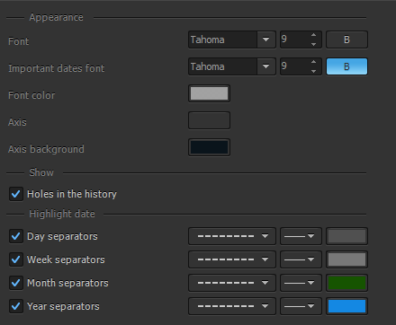 - Holes in the history - show holes on the chart if there is no history at that particular moment.
