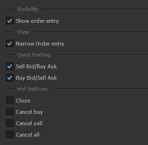 Choose buttons that will be displayed on the Order entry panel and how the panel is going to be displayed (narrow or wide).